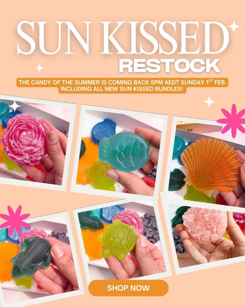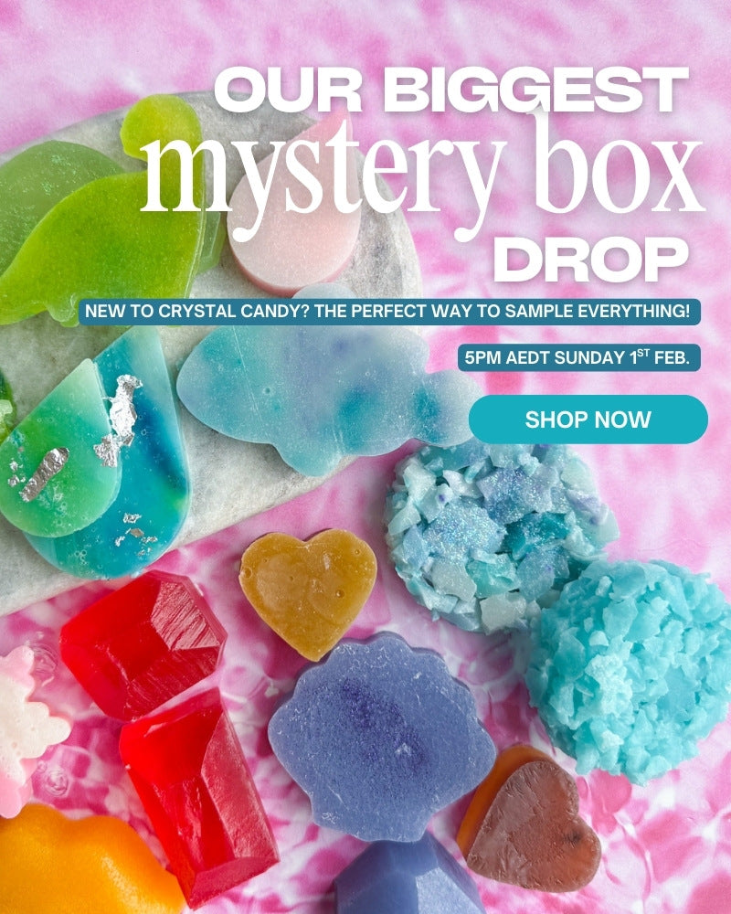 Our crystals begin as a jelly that air dries to form a crunchy outer layer. If jelly is not for you, try our clusters!