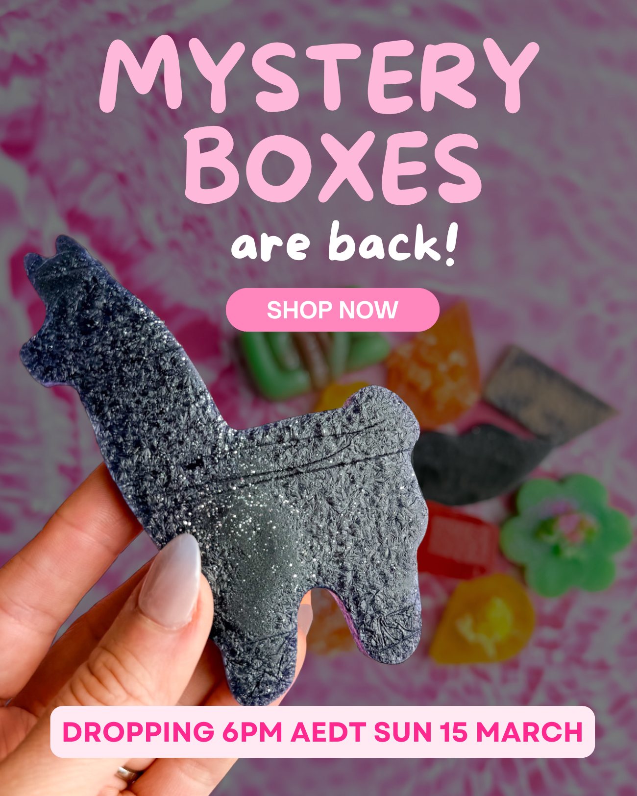 Every crystal is poured, cut, trayed, flipped and packed up by hand in our Melbourne factory. They are truely a labour of love. -