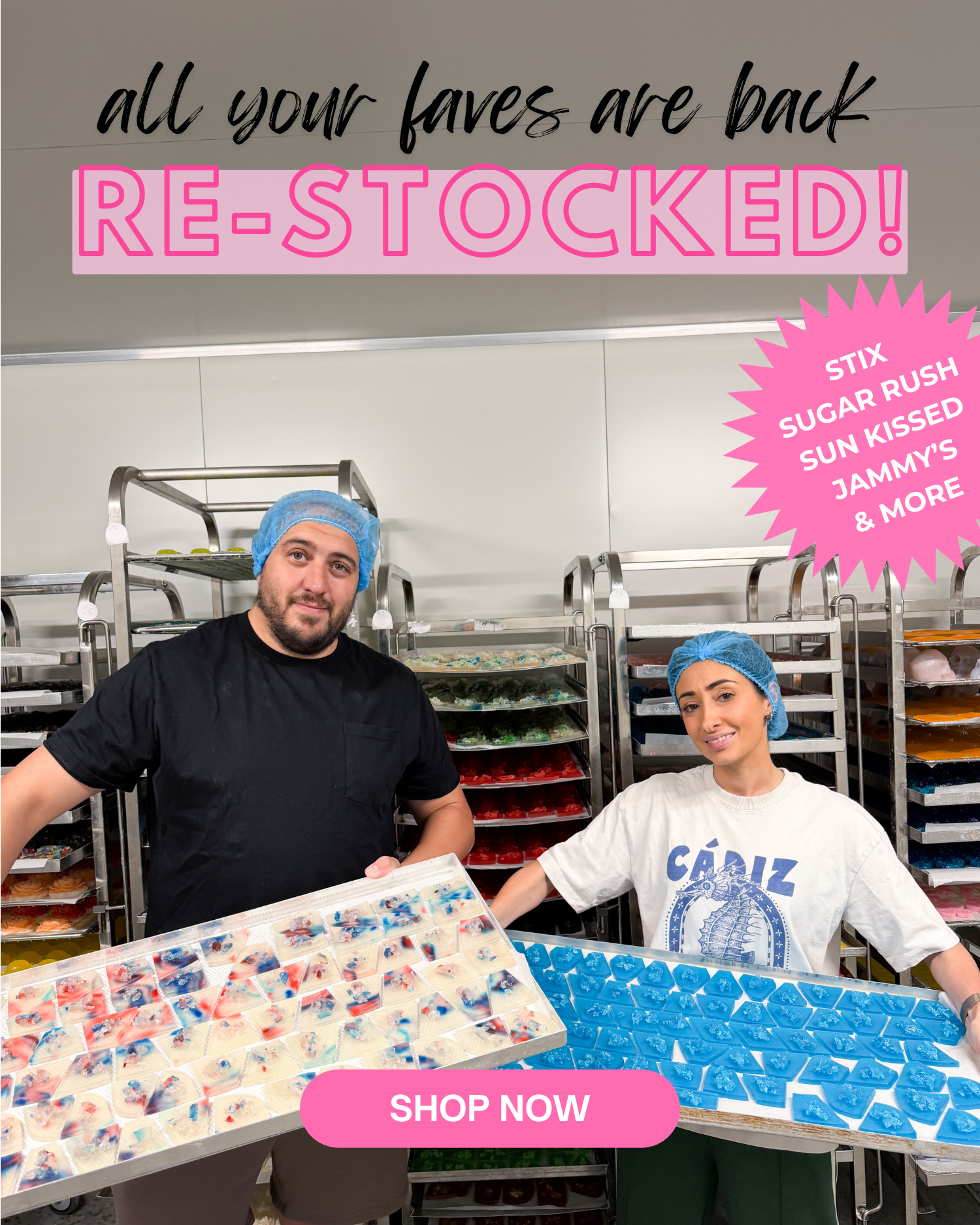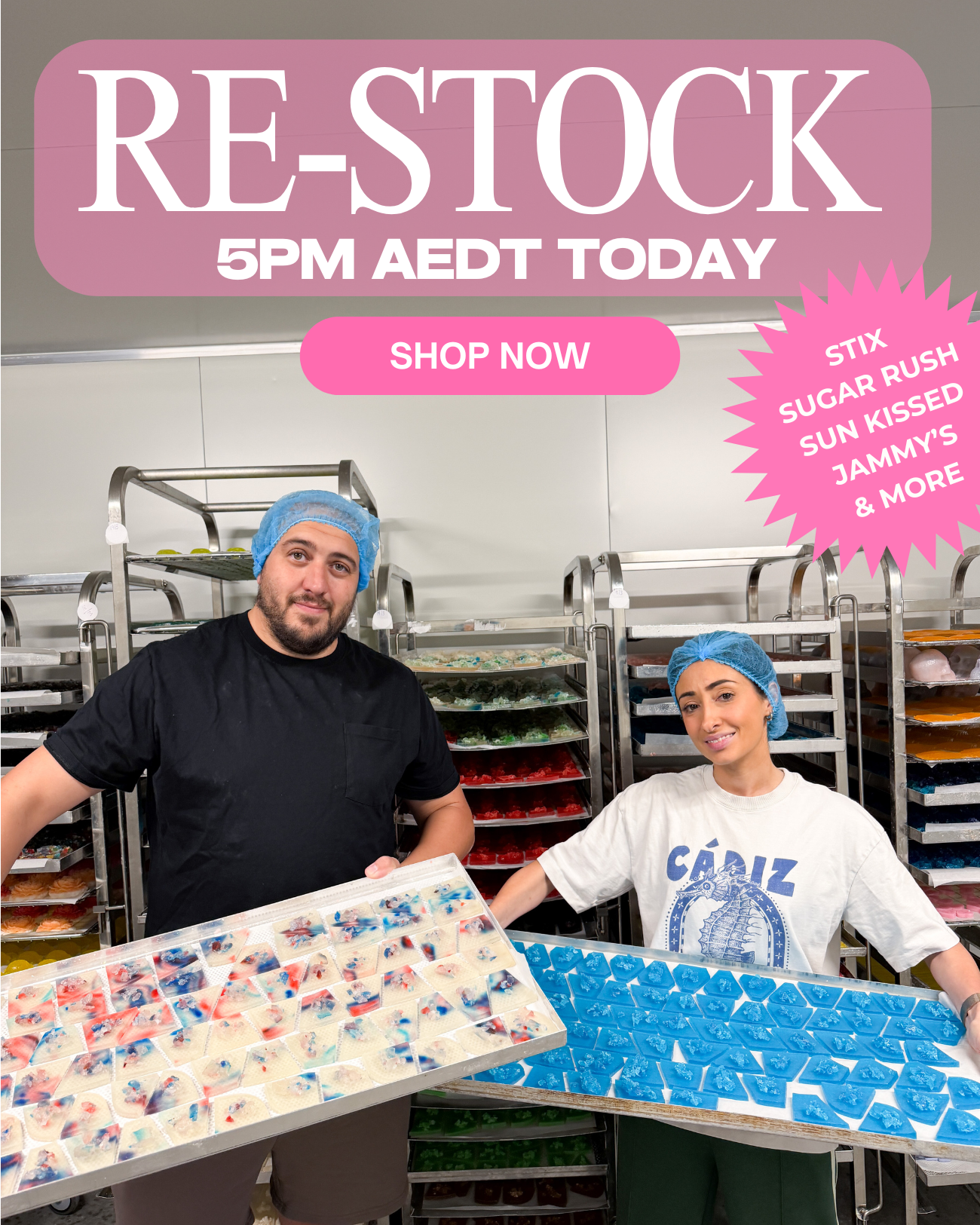 A limited edition themed drop, available by pre-order only. Each month we create a brand new crystal candy collection in small batches. Once pre-orders close, that theme is gone for good.