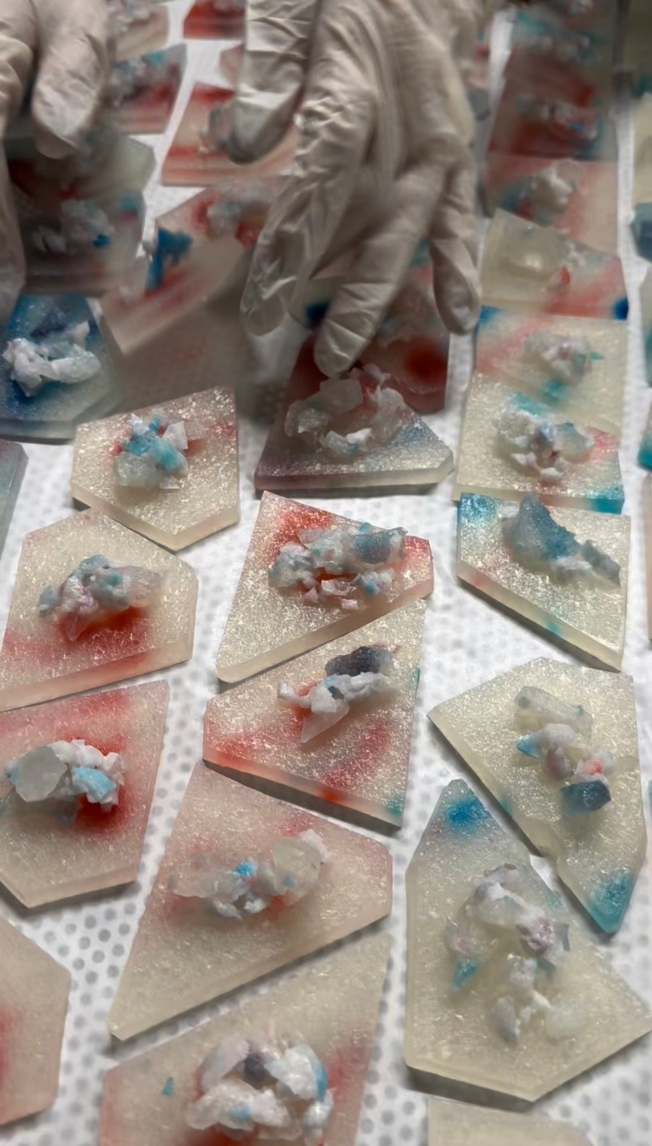 Each piece of crystal candy is hand poured and cut by us with love. No piece will be the same.