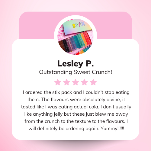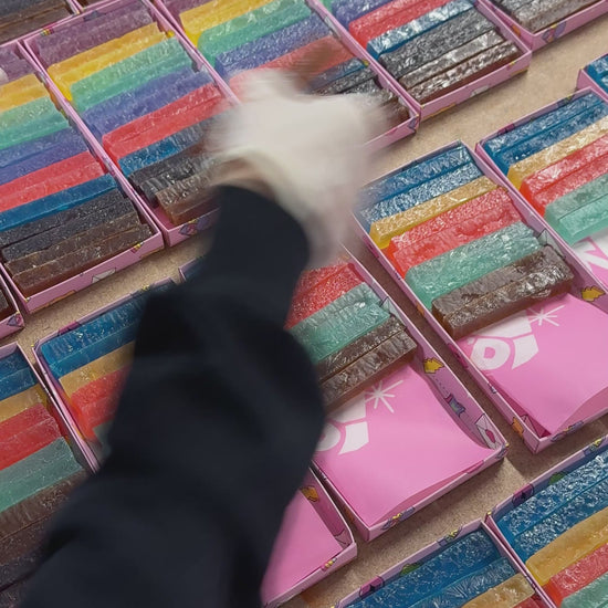 These mini sticks of joy are a bite-sized version of our classic crystal candies — still rocking that jelly centre and crunchy shell you didn’t know you were obsessed with until now. Perfect for on-the-go snacking, sneaky desk drawer stashes, or late-night candy cravings. 💖