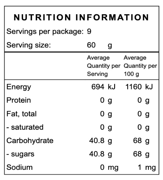 Our crystals also contain granulated sugar as well as various colours and flavourings.