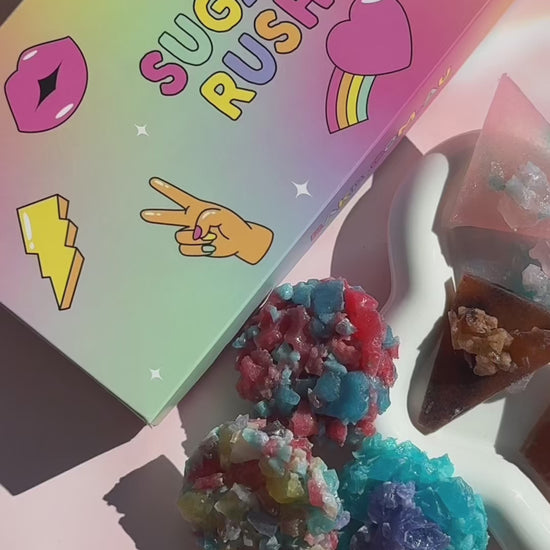 You've all been asking for a mixed pack for so long and we've finally released our Sugar Rush Sampler Box. In this mixed pack you will get to try all of our fave pieces with a mix of clusters and jelly crystals. There are 14 pieces in total..