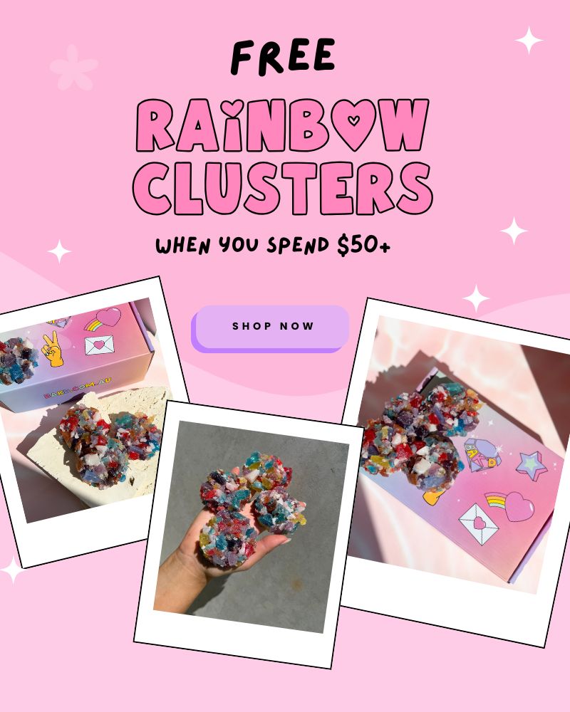 Handmade in Melbourne with love, our crystal candies are vegan, gluten-free, and crafted in small batches for that perfect sparkle and snap 🍬 Proudly pretty, totally unique, and seriously satisfying to crunch!
